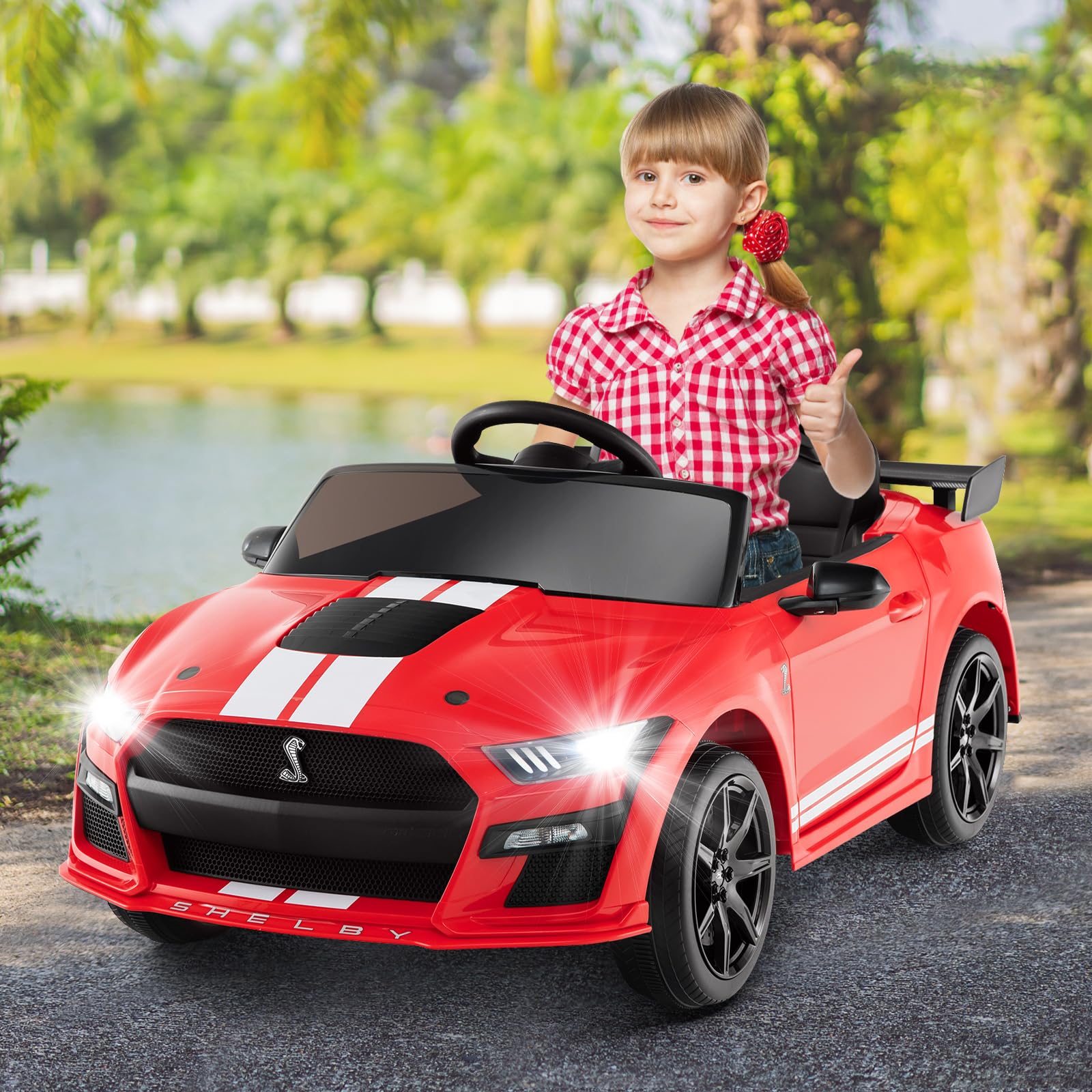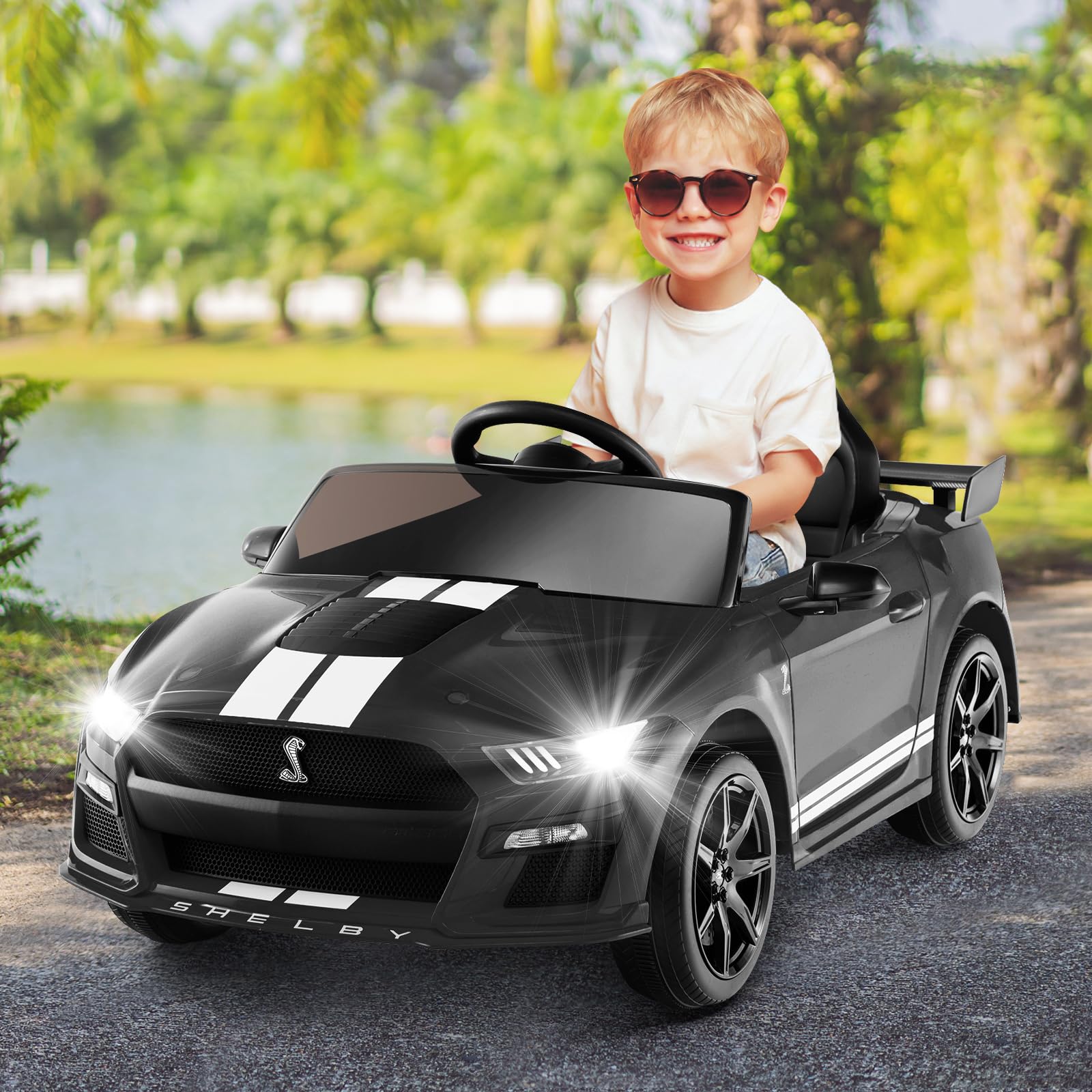 - ??Licensed Ford Mustang GT500: The INFANS kids car comes with an official Ford Mustang look with a sleek and streamlined design, and also comes with a cool rear wing and LED headlights to give kids a real ride experience.